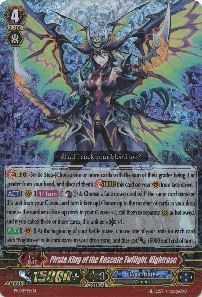 Cards like Nightstorm/Colombard can enable multi attack before Stride happens, which can be helpful. Cannoneer can retire and draw for you on your G3 Cocytus/Basskirk turns. A Nightrose deck can do more with units that are Generation Break restricted such as Negrolazy and Negrobone.