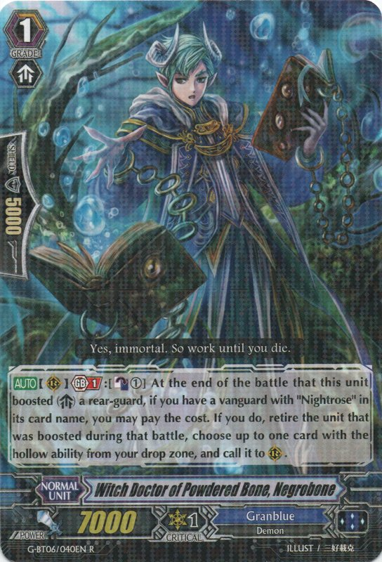 Essentially, the Soul was already a resource that couldn’t be as easily used for other cards that SBed without refunding the Soul with a SC. Negrolazy could refund his SB with his red text skill to SC. Our G Guards, especially Negronora, used a SB1 to activate its skill.