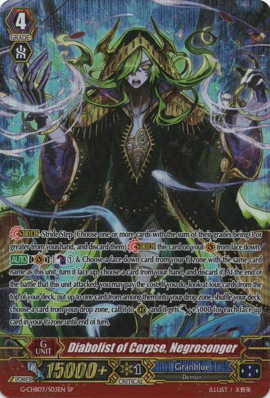 Very similar to the setup of the Nightrose variant. As of now, the Cocytus variant is a well balanced deck that can be used for competitive play. Now teching 1-2 copies of Nightmist and the new Bad Bounty stride, we can have a turn where we can push more for the win outside of a Megiddo turn. If the +Crit isn’t as important, than you can accomplish a bigger VG attack by breakriding with Skull Dragon instead.