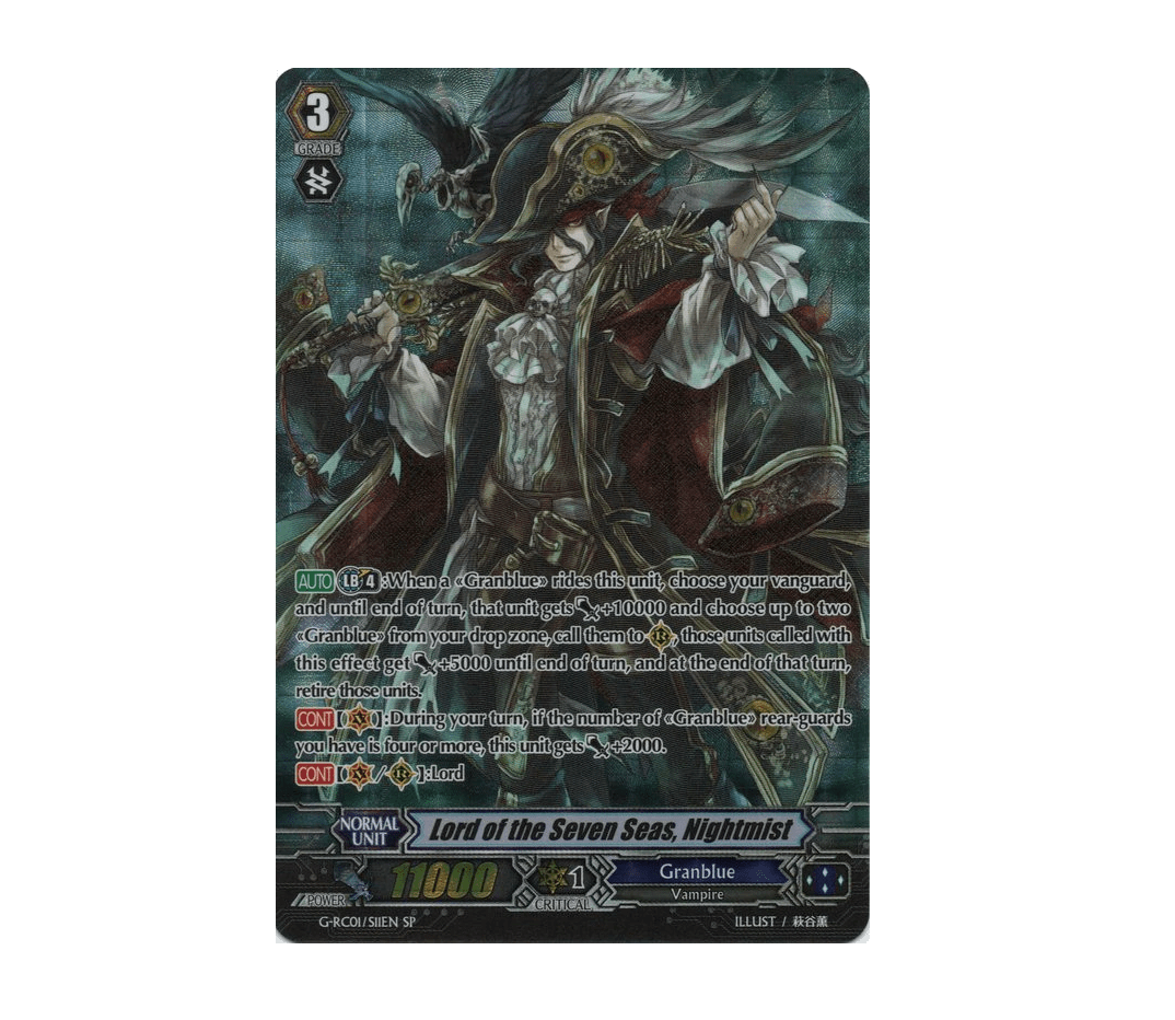 There are cards that compliment the G3 Nightmist’s skill. The original Dancing Cutlass can SB2 to draw 1. This guy lets us build more drop zone by SBing cards and also digging into our deck more quicker. A good ratio for the Dancing Cutlass engine is having 3 original Dancing Cutlass and 1 V Series Dancing Cutlass.