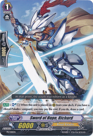 | [AUTO](VC/RC):When placed, COST [Counter Blast (1)], search your deck for up to one card, put it into your drop zone, shuffle your deck, and call up to one card from your drop zone to (RC). This ability may only be used by a card with the same card name once a turn. |