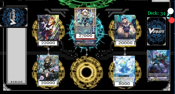 If you have to give up your first stride you can have the above field entering battle phase. From there its all based on what’s in your hand or drop to decide what you are calling during the battle phase. Normally a booster behind vanguard to ensure all your lines require 15k shield or more to guard and you are going to attacking at least 4 times on your G3 turn. Whichever units you call, whether it be Zarzan for aggression or draw cards like Ghost Ship and Ripple Banshee, understand that you G3 turn will be very aggressive and will leverage your advantage. Be mindful that you will be at lower damage for the most part so make sure your hand is still stable enough to survive.