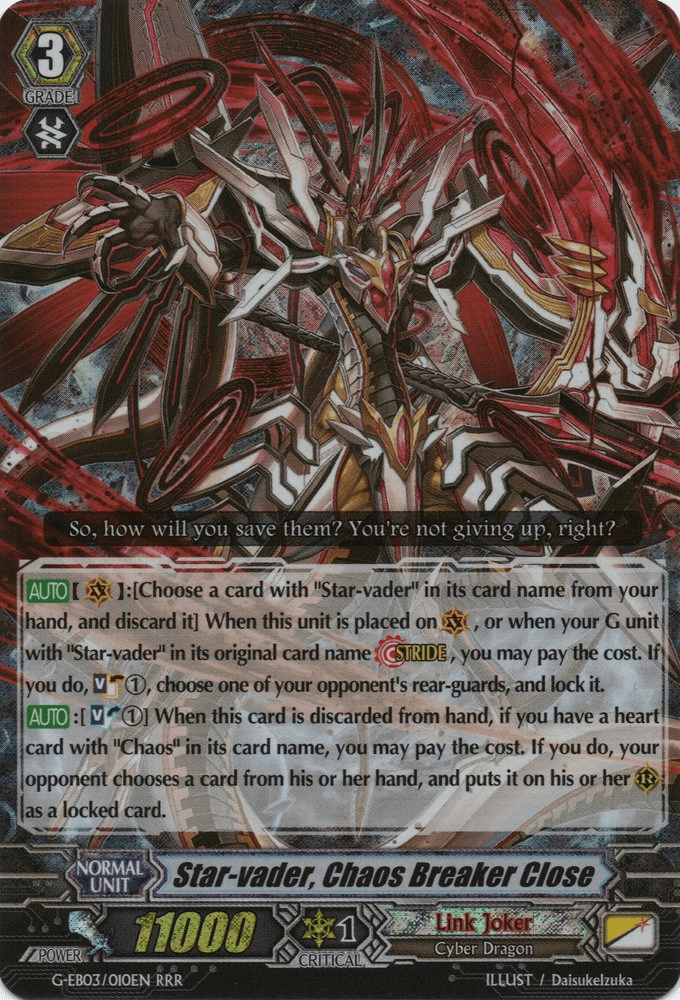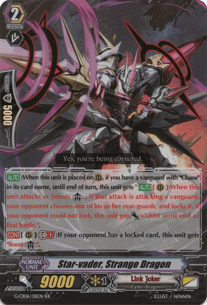 Before we get into this section I would like to do a bit of a flashback to Chaos in the G-era. Chaos in G-era was a powerhouse for being a strong anti-meta deck. Being able to lock down and slowly drain your opponent of life. But the reason in fell off in V-series is everything got faster and cards required having a “Star-Vader” vanguard. Therefore you are losing out in shields and can’t really run much tech cards since it will damage the consistency.