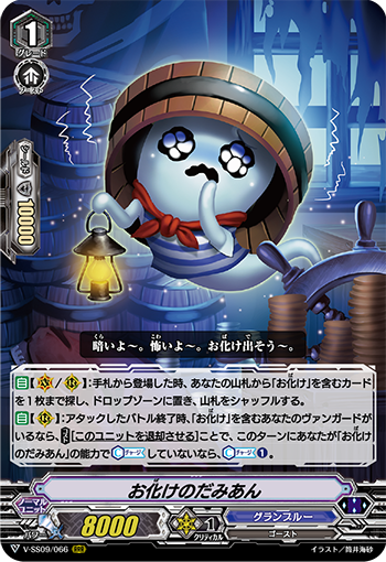 [AUTO](VC):When your rear-guard is retired by a card’s ability during your turn, COST [Counter Blast (1)], and call a card with “Ghostie” in its card name and grade less than the grade of the retired unit from your drop zone to (RC).