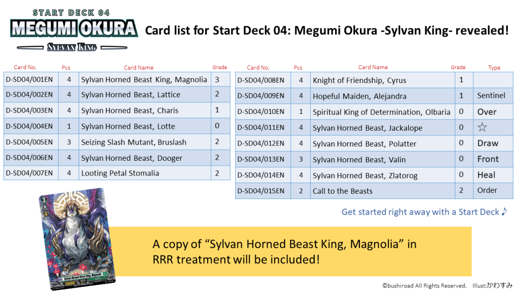 Sylvan Horned Beast, Magnolia is our only G3 in this starter deck! I think it’s a good thing because we have the Ride deck now.