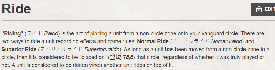 Notice it just says Ride and the last bullet point points out the need for clarification regarding Superior Riding. Here’s the Wiki for Ride: