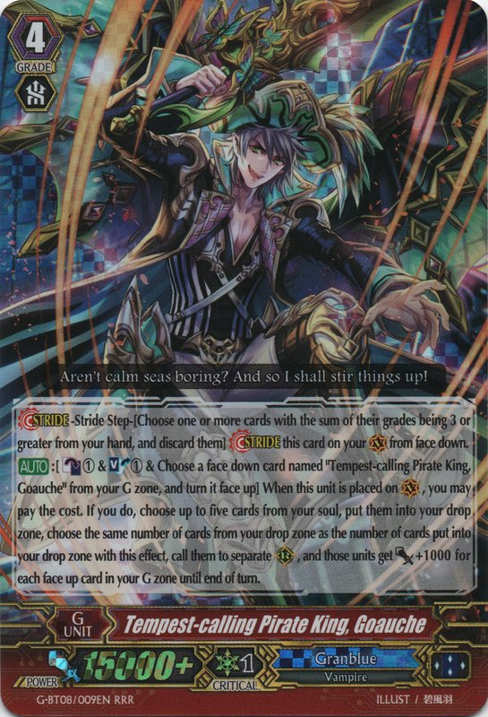 Goauche may be a card you are curious about! When you use the superior ride engine with Spirit Exceed you actually shove 2 cards into soul from the Rear Guard Circle so you may have more soul than you think or may like! Ideally you want the BARE MINIMUM of your soul since drop-zone count is still important depending on your deck type! Gouache is there as an alternative first stride if you are able to make use of him. After more testing there may be a Zarzan build for Goauche and Pinot Noir! Just something to keep in mind.