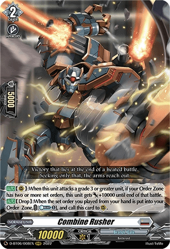 Typically players use Bobalmine to counter charge (CC) in the battle phase, so they can perform both Eva’s skills in the same turn. So be mindful of that too. However, they also play cards like Combine Rusher, which uses a CB to revive itself. It serves as an attacker and makes it easier for the Eva player to achieve 4 attacks while not losing hand advantage.