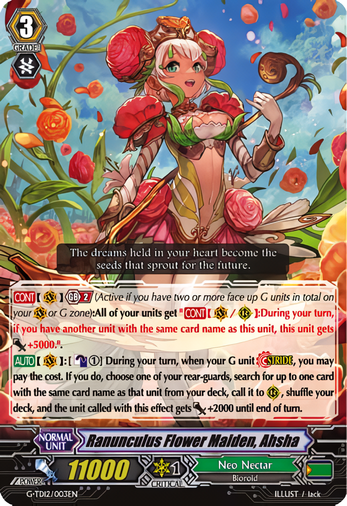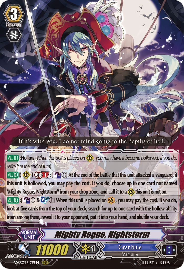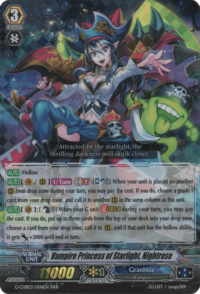 Tommy V helps with consistency in seeing your Nightrose ride targets. It discards G3s like Nightrose V and Skull Dragon. It also grabs G3 Heals if we need them to defend with. It’s an easy 13k booster that we can rely on. It comes up with boosting cards like Nightstorm or Beatrice. That can help get over a damage-checked trigger.