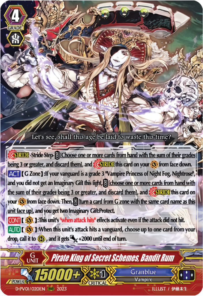 Negrobolt can be used as a win-con on a Bad Bounty turn. The power and extra Crit make it very threatening. Which can force a PG out, making it easier for a Skull Dragon to hit afterward. If your opponent survives, you’ll still get +5k shield extra for every 10 cards in Drop. You get this advantage for each card you guard with. Pretty spicy if you do play it, 1-2 copies.