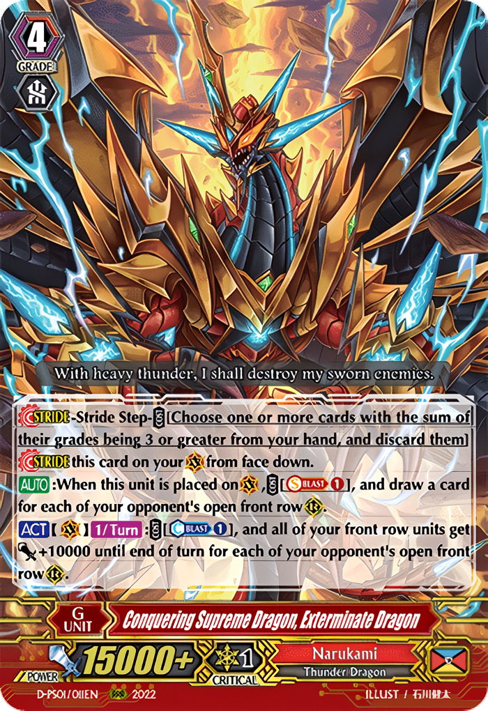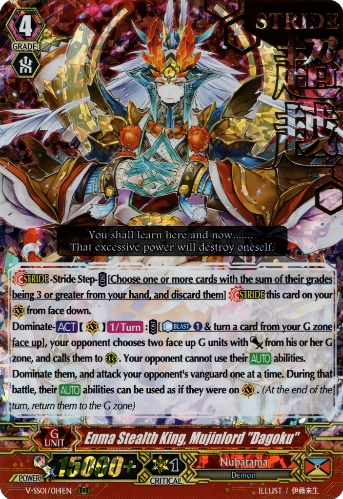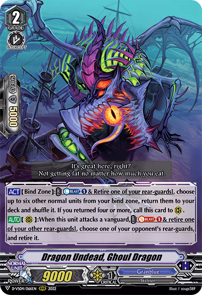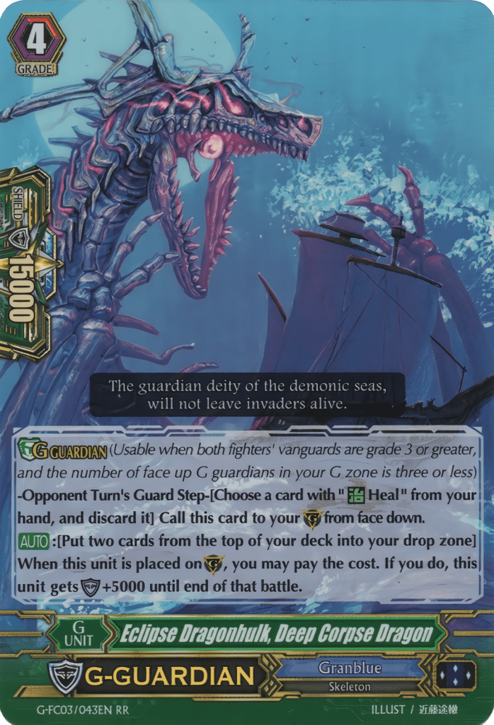 Skull Dragon is literally a beater we spam. 2 copies is enough. It self-retires at the end of the battle it attacked. It can be revived quickly by another Rear-guard or Vanguard skill. In the late game, this card easily scales to 60/70k power levels. It’s really annoying for the opponent to deal with. 🙂