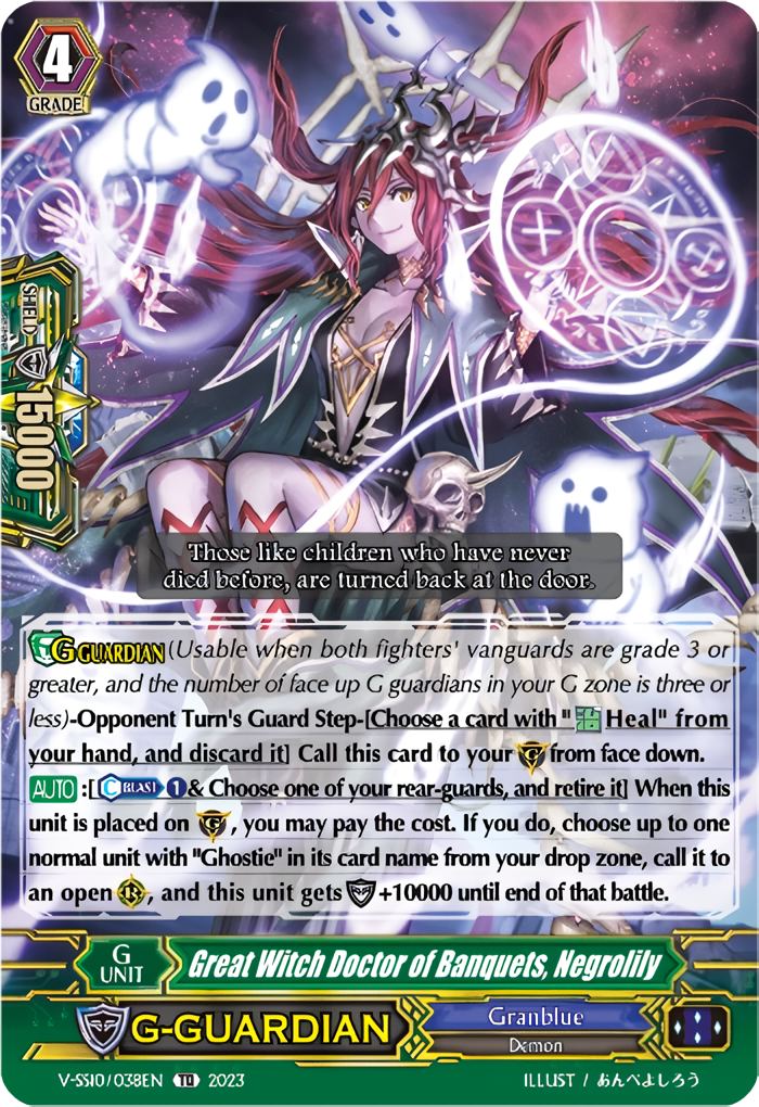 You can also reride cards like Beatrice and Nightrose G instead. Typically, those are chosen if you don’t have enough CB or a Nightrose V isn’t available in your Drop zone. You can also reride Skull Dragon. That choice arises in the Megacolony and Chaos matchups due to the inability to call more Rear-guards.