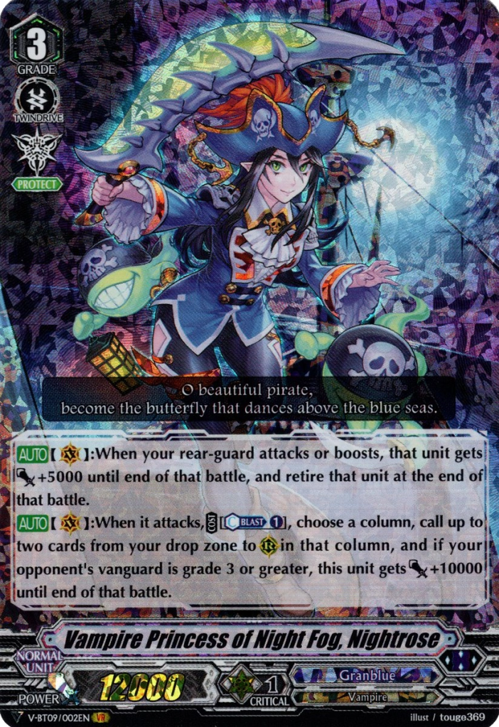 Often we reride Nightrose V to help extend more attacks where we can revive cards like Skull Dragons, Nightstorm, Beatrice/Colombard. Nightrose has a Continuous skill that gives all Rear-guards an extra +5k.