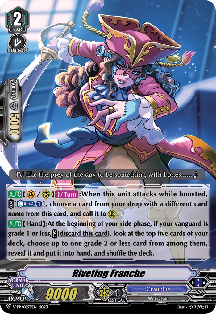 Riveting Franche can be played at 0-4 copies depending on the build. Normal Nightrose builds can play 1 copy to help with a consistency boost for early game setup. And then later used as an attack extender if needed.