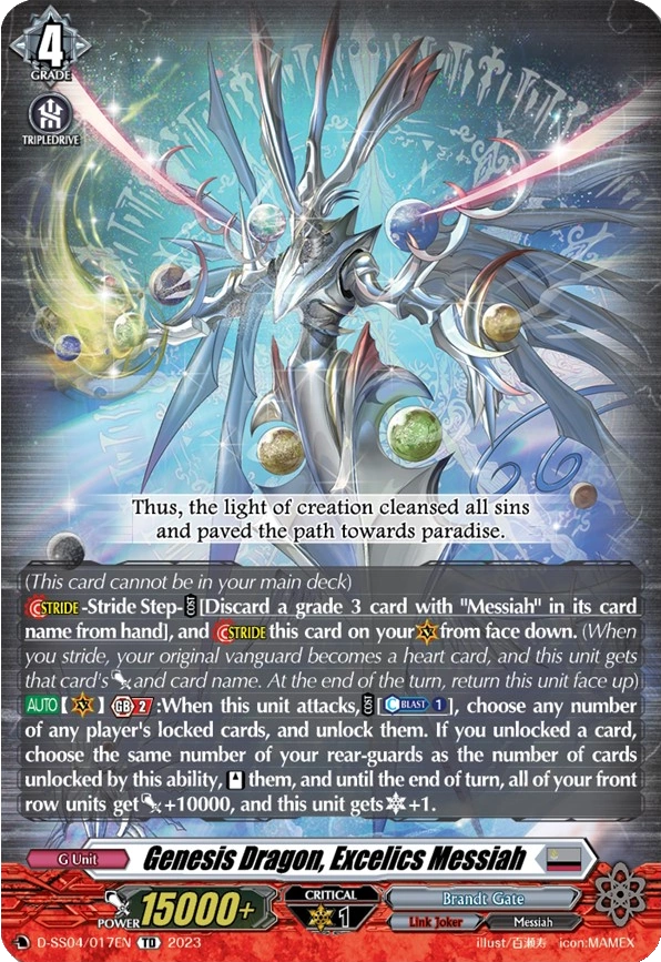 The Messiah Deletor deck takes advantage of Given being able to restand their VG. They will go into Force 2 as well. One on the VC and the other on RC. The ideal turn for them is to ride a Deleter G3 that deletes your VG. Then Stride into Excelics.