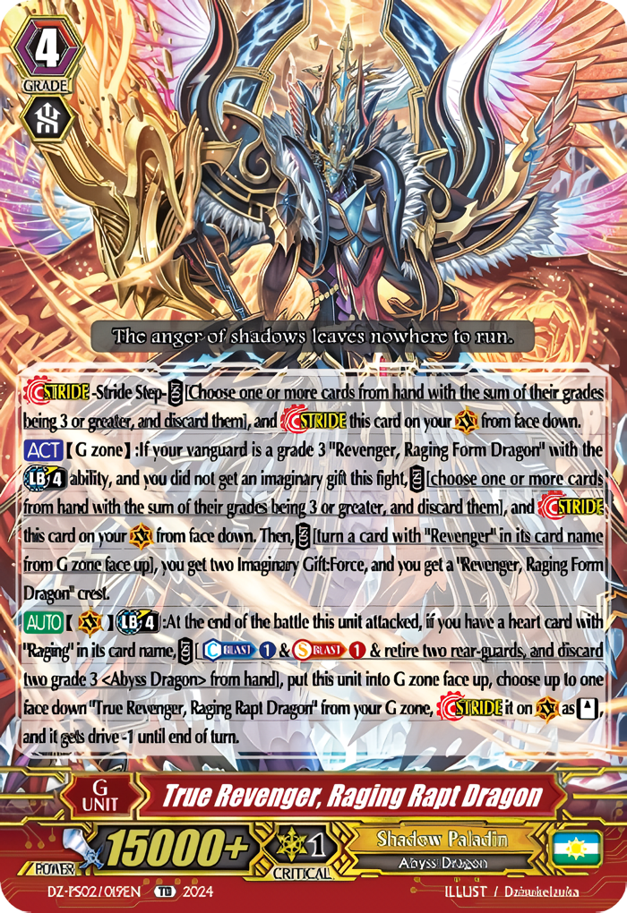 This locks out their Slay Hex on-ride skill to reride into the OG Raging Form. If that’s all they have then it puts them in an awkward spot. If they have the OG Raging Form in hand, they get 3 VG attacks with Demon World Castle. They could also use a G3 Heal to give themselves damage. But they have to have those cards along with the required pieces.
