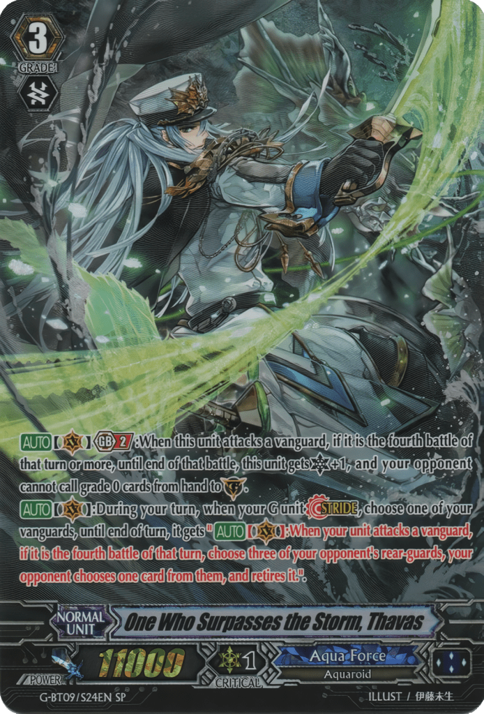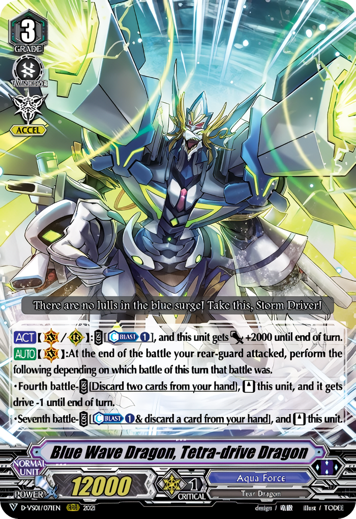 Aqua Force is in a weird state where it has Thavas and Blue Wave G3s. Generally, the stride turns are where they pop off. A well-timed Cannoneer on restanders hurts them. Most builds don’t have the best early game except a more Tetra-drive based deck.