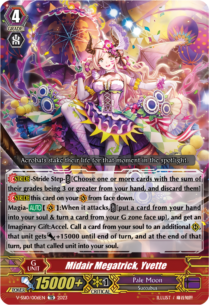 These cards are their usual go-to strides early and mid-game. They have 2 VG attacks with multiple RG attacks with these strides. Stage Harri will use Pigeon Pop to call Starry Pop, so a well-timed Cannoneer can help. Ideally, they want to generate Accel circles onto the Stage for both higher power-gain and hand advantage.